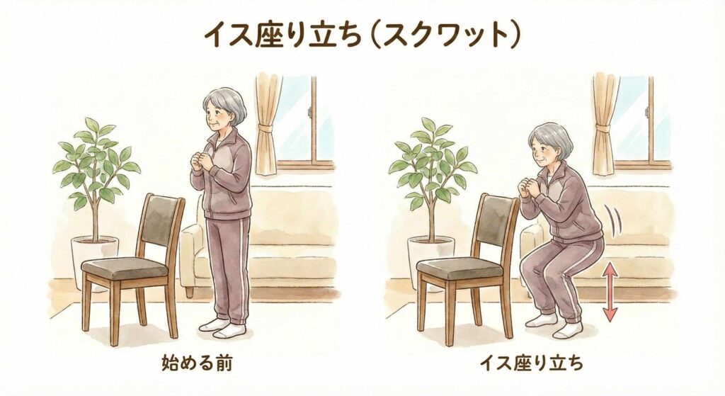 • メニュー: 3. イス座り立ち(スクワット)
