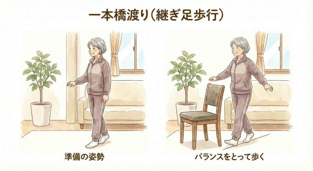 「一本橋渡り」でバランス感覚を磨く(継ぎ足歩行)